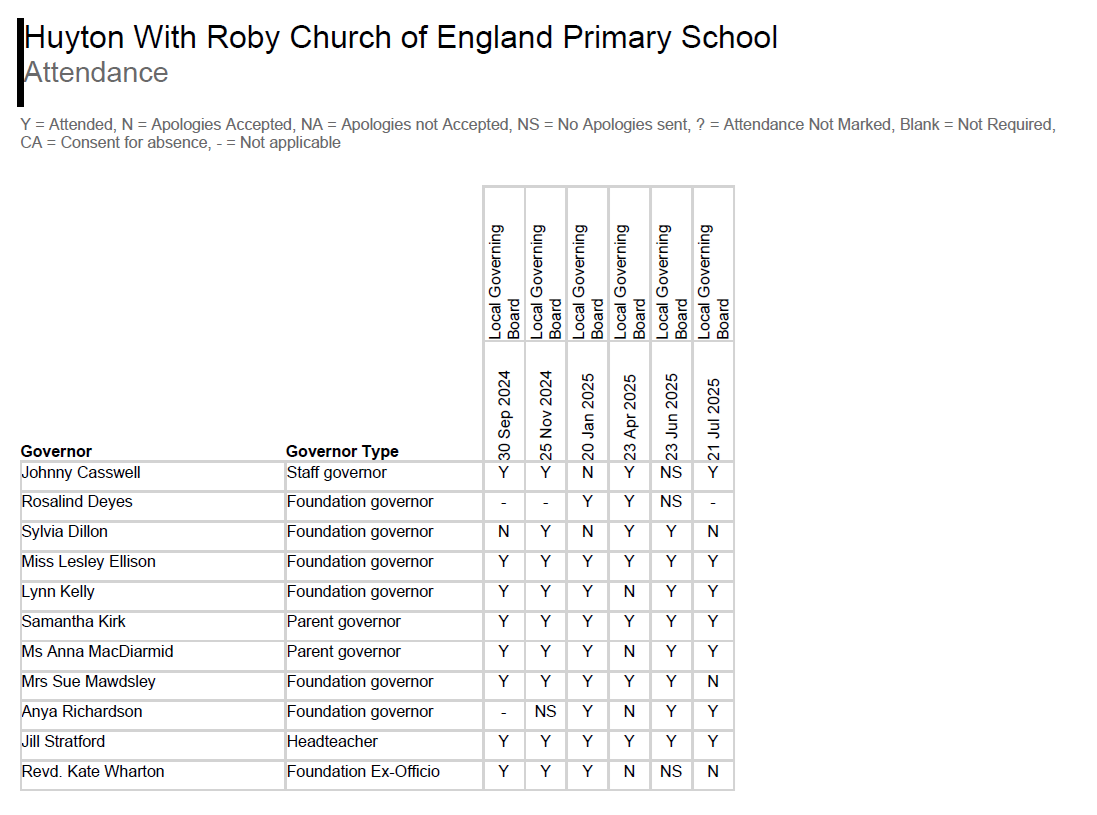 Local Governing Body Attendance at Meetings 2023-2024 |